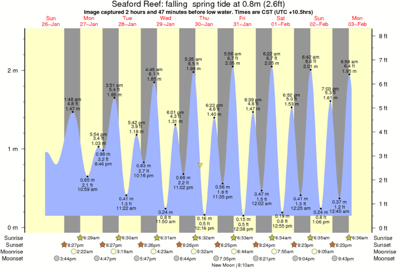 Forecast wind and swell just offshore from Seaford Reef around the time the photo was taken