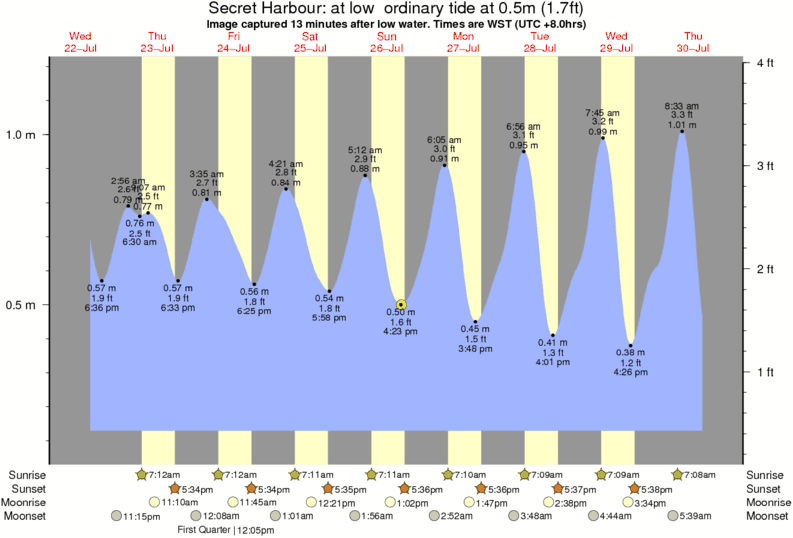 Image captured 13 minutes after low water (at low ordinary tide). Tide height was 0.5m (1.7 ft). Range 1.00m (3.3 ft). Toggle tide graph