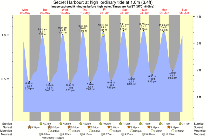 Image captured 9 minutes before high water (at high ordinary tide). Tide height was 1.0m (3.4 ft). Range 1.01m (3.3 ft). Toggle tide graph