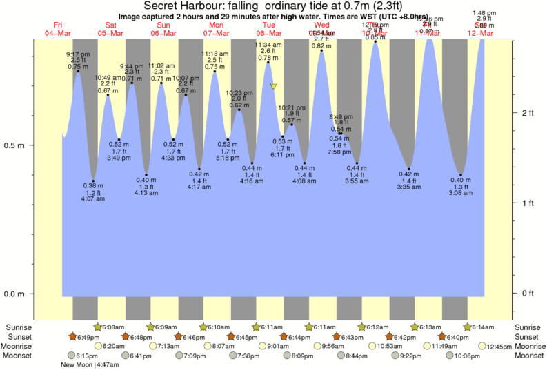 Image captured 2 hours and 29 minutes after high water (falling ordinary tide). Tide height was 0.7m (2.3 ft). Range 0.79m (2.6 ft). Toggle tide graph