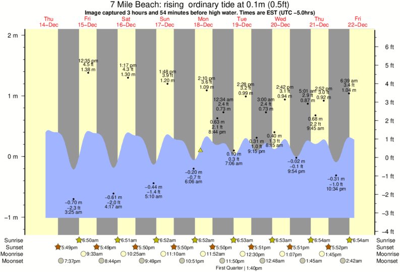 Forecast wind and swell just offshore from 7 Mile Beach around the time the photo was taken