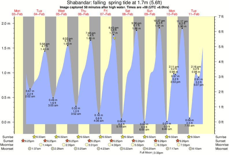 Image captured 58 minutes after high water (falling spring tide). Tide height was 1.7m (5.6 ft). Range 1.98m (6.5 ft). Toggle tide graph