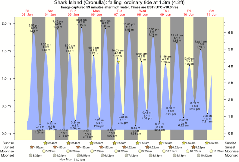 Image captured 53 minutes after high water (falling ordinary tide). Tide height was 1.3m (4.2 ft). Range 1.86m (6.1 ft). Toggle tide graph