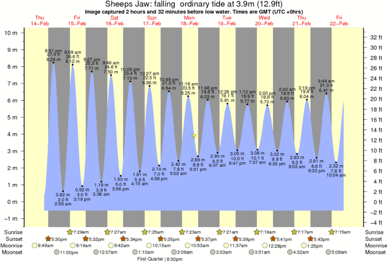 Image captured 2 hours and 32 minutes before low water (falling ordinary tide). Tide height was 3.9m (12.9 ft). Range 9.85m (32.3 ft). Toggle tide graph