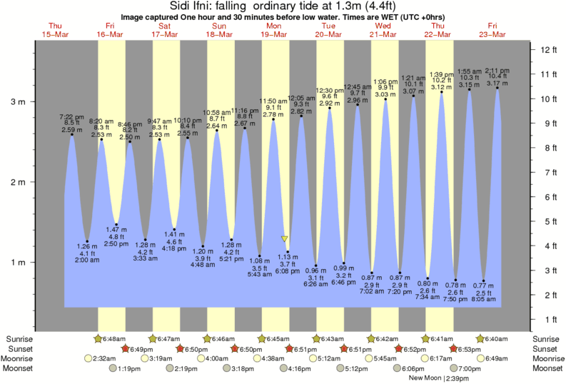 Image captured One hour and 30 minutes before low water (falling ordinary tide). Tide height was 1.3m (4.4 ft). Range 3.02m (9.9 ft). Toggle tide graph