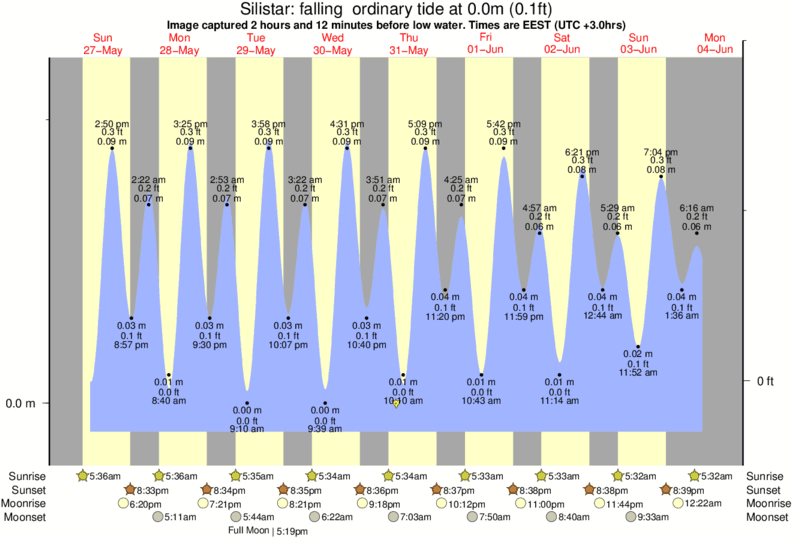 Image captured 2 hours and 12 minutes before low water (falling ordinary tide). Tide height was 0.0m (0.1 ft). Range 0.12m (0.4 ft). Toggle tide graph