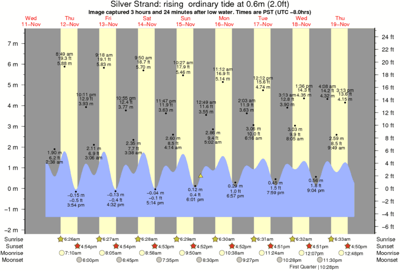 Forecast wind and swell just offshore from Silver Strand around the time the photo was taken