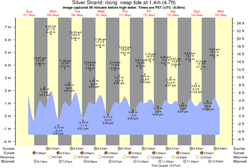 Forecast wind and swell just offshore from Silver Strand around the time the photo was taken