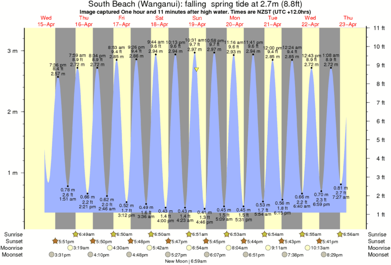 Forecast wind and swell just offshore from South Beach (Wanganui) around the time the photo was taken