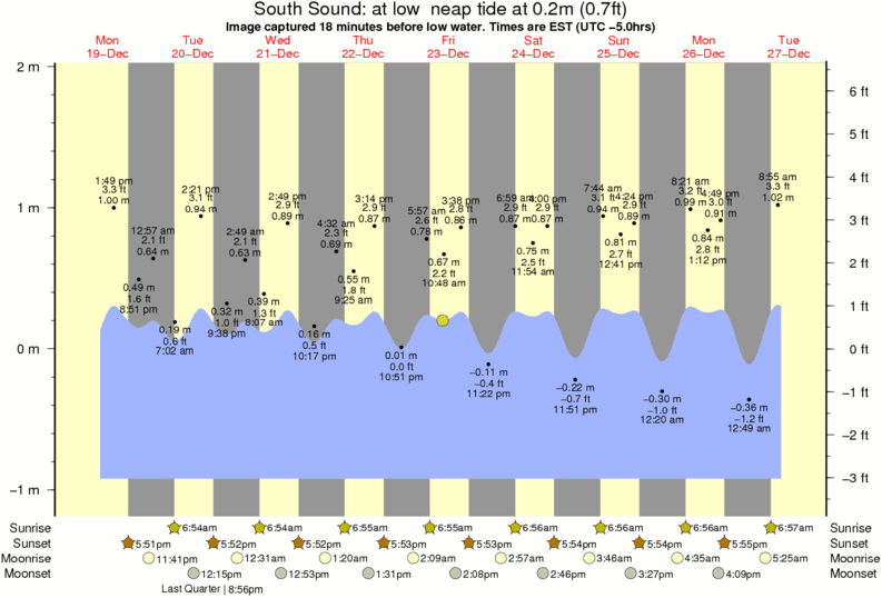 Image captured 18 minutes before low water (at low neap tide). Tide height was 0.2m (0.7 ft). Range 2.68m (8.8 ft). Toggle tide graph