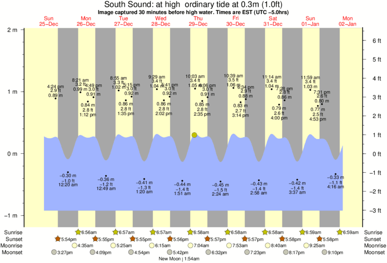 Image captured 30 minutes before high water (at high ordinary tide). Tide height was 0.3m (1.0 ft). Range 2.68m (8.8 ft). Toggle tide graph