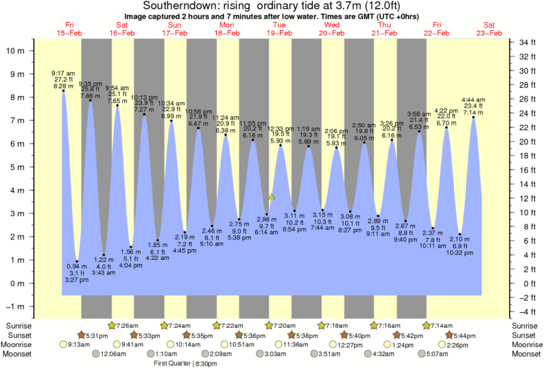 Image captured 2 hours and 7 minutes after low water (rising ordinary tide). Tide height was 3.7m (12.0 ft). Range 10.03m (32.9 ft). Toggle tide graph
