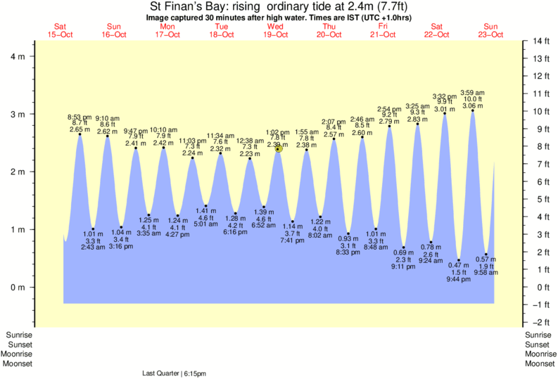 Forecast wind and swell just offshore from St Finan's Bay around the time the photo was taken