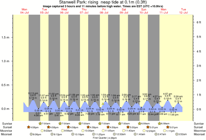 Image captured 3 hours and 11 minutes before high water (rising neap tide). Tide height was 0.1m (0.3 ft). Range 1.86m (6.1 ft). Toggle tide graph
