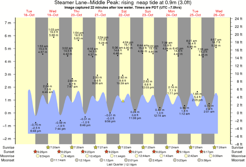 Image captured 22 minutes after low water (rising neap tide). Tide height was 0.9m (3.0 ft). Range 8.20m (26.9 ft). Toggle tide graph