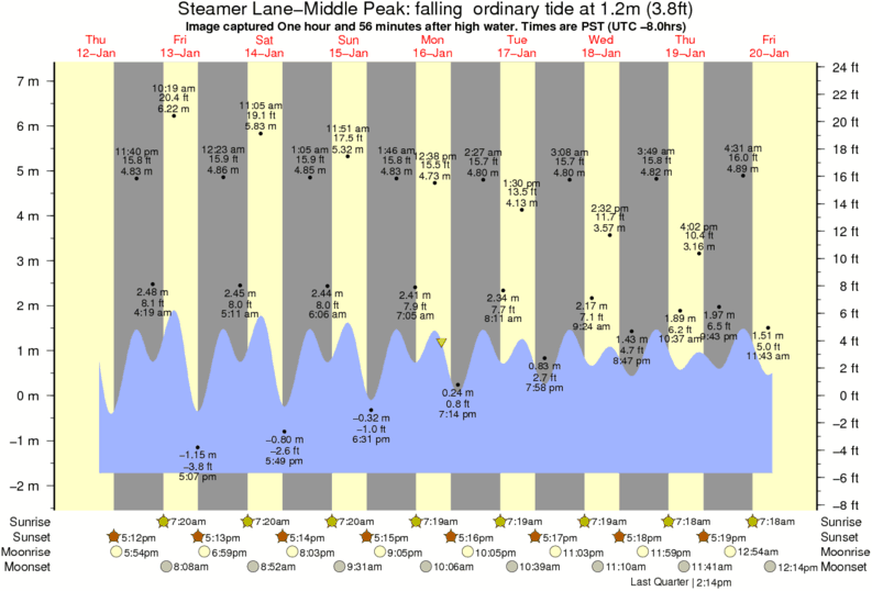 Image captured One hour and 56 minutes after high water (falling ordinary tide). Tide height was 1.2m (3.8 ft). Range 8.31m (27.3 ft). Toggle tide graph