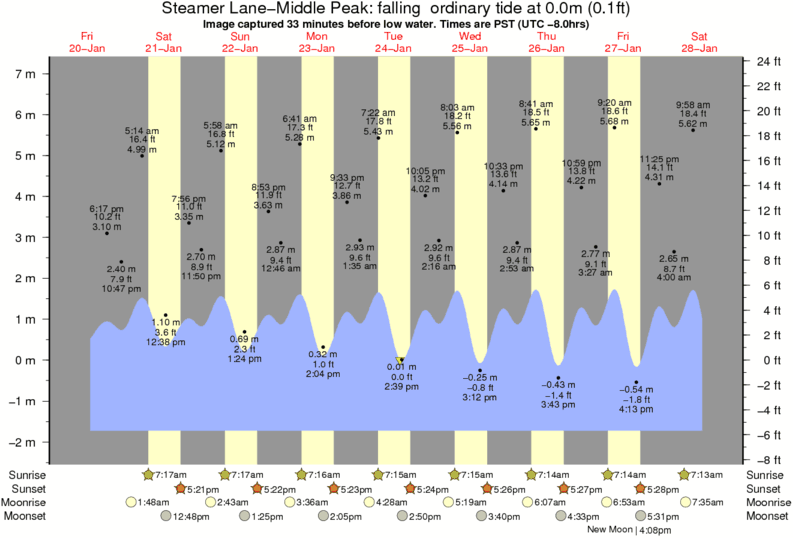 Forecast wind and swell just offshore from Steamer Lane-Middle Peak around the time the photo was taken