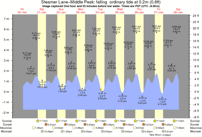 Image captured One hour and 53 minutes before low water (falling ordinary tide). Tide height was 0.2m (0.8 ft). Range 8.31m (27.3 ft). Toggle tide graph