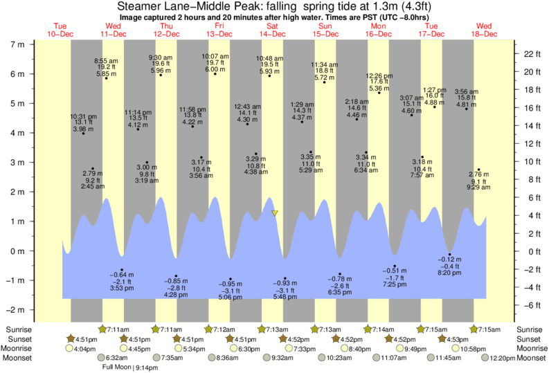 Image captured 2 hours and 20 minutes after high water (falling spring tide). Tide height was 1.3m (4.3 ft). Range 7.98m (26.2 ft). Toggle tide graph