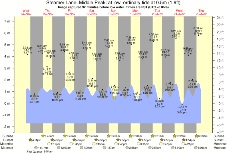 Forecast wind and swell just offshore from Steamer Lane-Middle Peak around the time the photo was taken