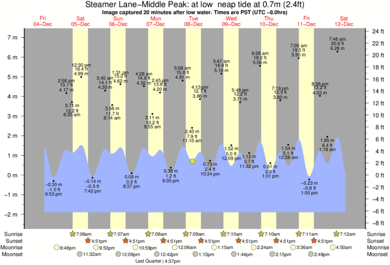 Forecast wind and swell just offshore from Steamer Lane-Middle Peak around the time the photo was taken