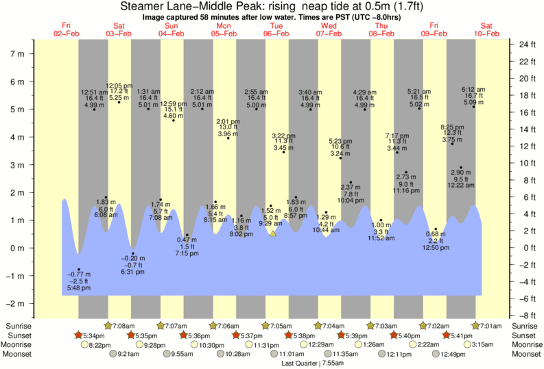 Image captured 58 minutes after low water (rising neap tide). Tide height was 0.5m (1.7 ft). Range 8.39m (27.5 ft). Toggle tide graph