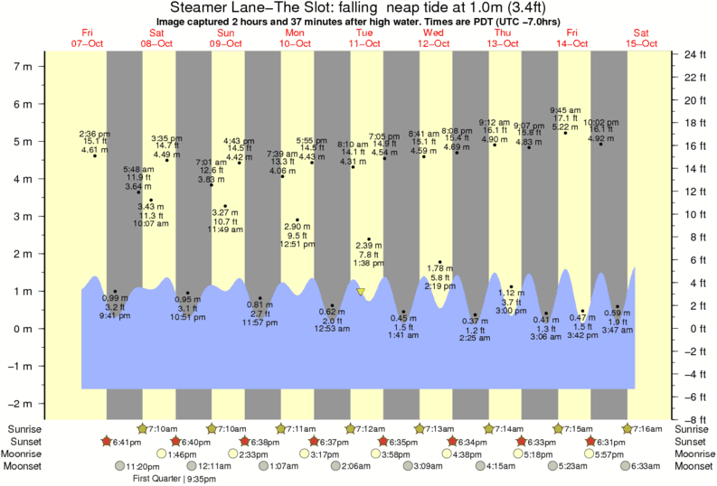 Image captured 2 hours and 37 minutes after high water (falling neap tide). Tide height was 1.0m (3.4 ft). Range 8.20m (26.9 ft). Toggle tide graph