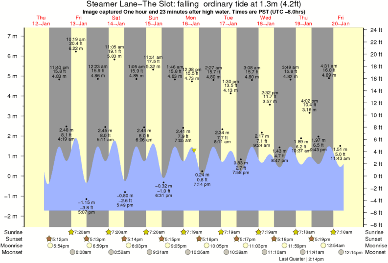 Forecast wind and swell just offshore from Steamer Lane-The Slot around the time the photo was taken