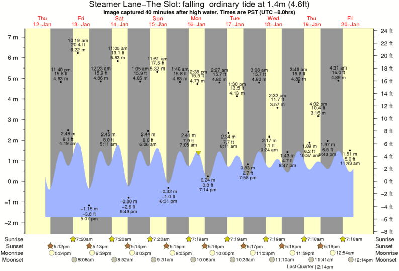 Image captured 40 minutes after high water (falling ordinary tide). Tide height was 1.4m (4.6 ft). Range 8.31m (27.3 ft). Toggle tide graph