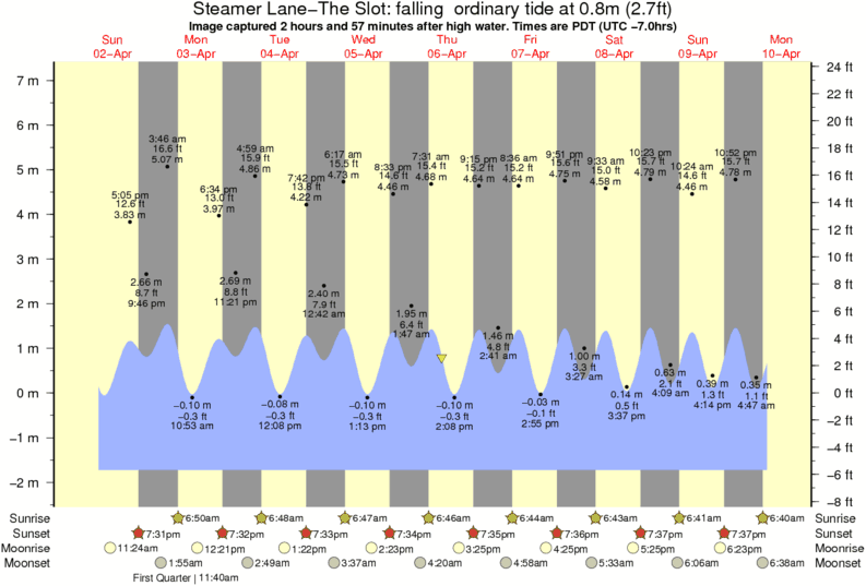 Forecast wind and swell just offshore from Steamer Lane-The Slot around the time the photo was taken