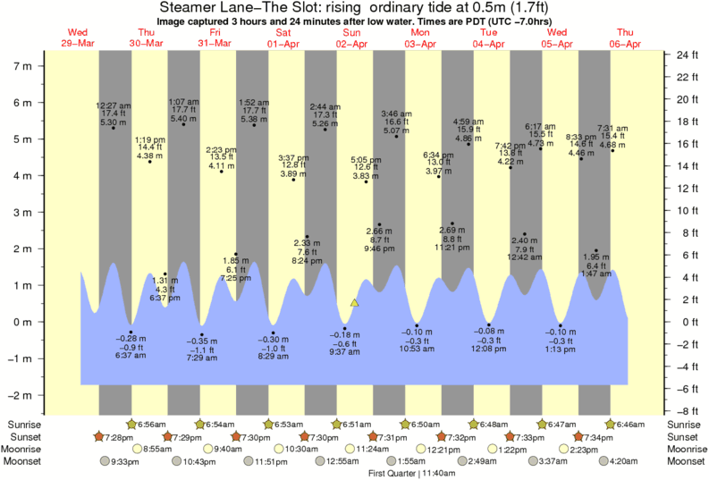 Forecast wind and swell just offshore from Steamer Lane-The Slot around the time the photo was taken