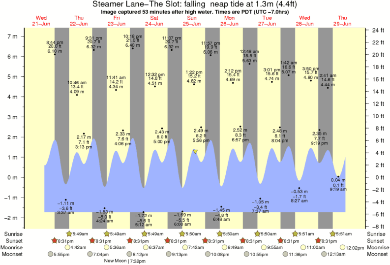 Image captured 53 minutes after high water (falling neap tide). Tide height was 1.3m (4.4 ft). Range 8.31m (27.3 ft). Toggle tide graph