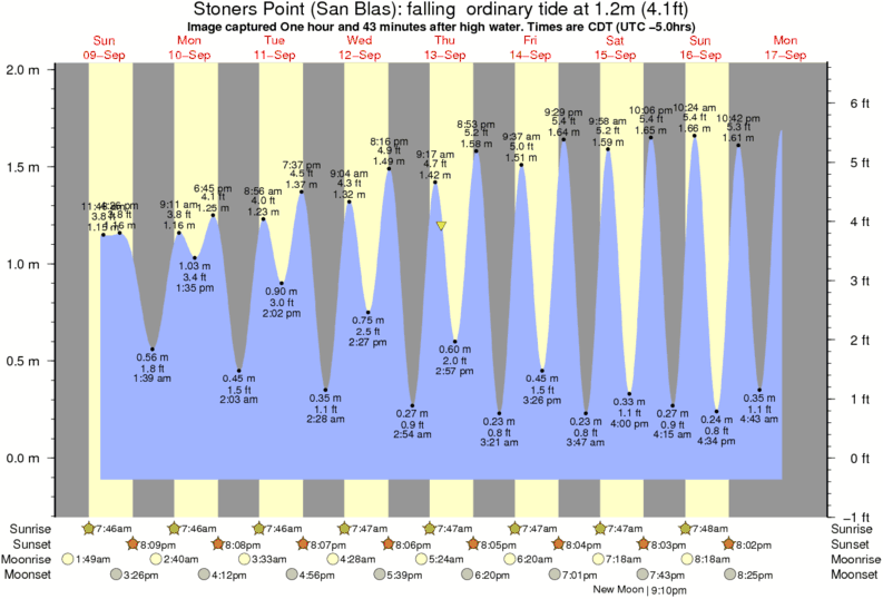 Image captured One hour and 43 minutes after high water (falling ordinary tide). Tide height was 1.2m (4.1 ft). Range 1.95m (6.4 ft). Toggle tide graph