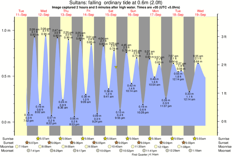 Image captured 2 hours and 5 minutes after high water (falling ordinary tide). Tide height was 0.6m (2.0 ft). Range 1.08m (3.5 ft). Toggle tide graph
