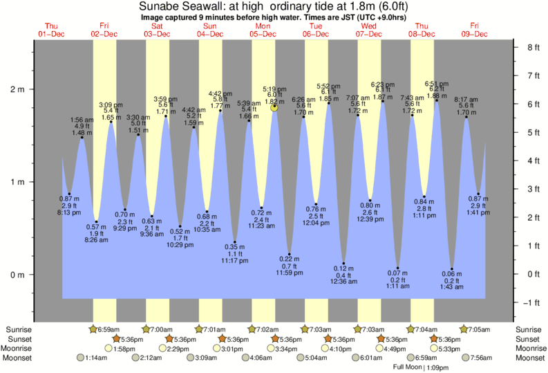 Forecast wind and swell just offshore from Sunabe Seawall around the time the photo was taken