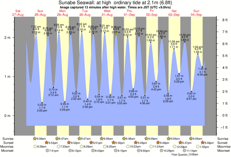 Forecast wind and swell just offshore from Sunabe Seawall around the time the photo was taken