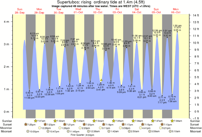 Image captured 49 minutes after low water (rising ordinary tide). Tide height was 1.4m (4.5 ft). Range 3.85m (12.6 ft). Toggle tide graph