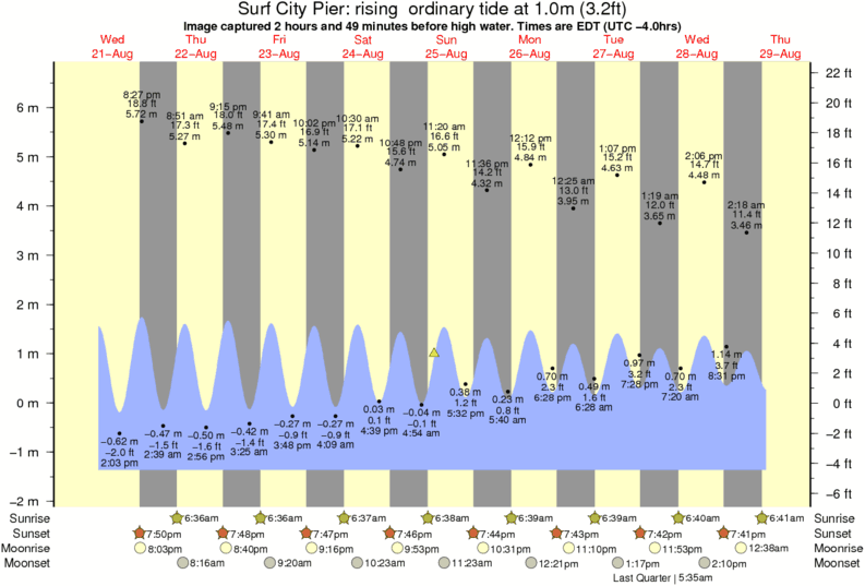 Forecast wind and swell just offshore from Surf City Pier around the time the photo was taken