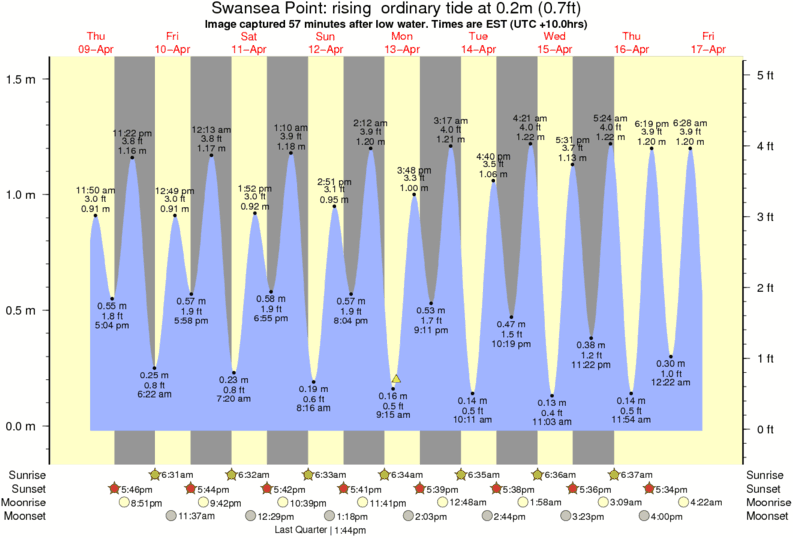 Forecast wind and swell just offshore from Swansea Point around the time the photo was taken