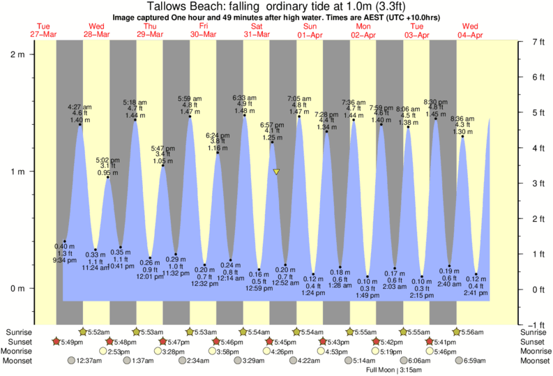 Forecast wind and swell just offshore from Tallows Beach around the time the photo was taken