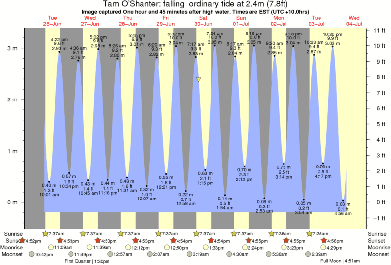 Image captured One hour and 45 minutes after high water (falling ordinary tide). Tide height was 2.4m (7.8 ft). Range 3.26m (10.7 ft). Toggle tide graph