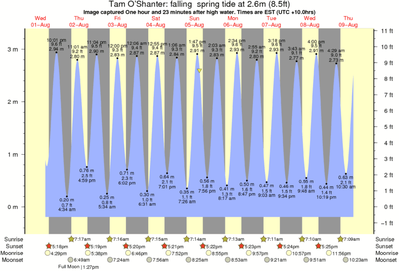Image captured One hour and 23 minutes after high water (falling spring tide). Tide height was 2.6m (8.5 ft). Range 3.26m (10.7 ft). Toggle tide graph
