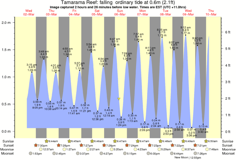 Image captured 2 hours and 26 minutes before low water (falling ordinary tide). Tide height was 0.6m (2.1 ft). Range 1.86m (6.1 ft). Toggle tide graph