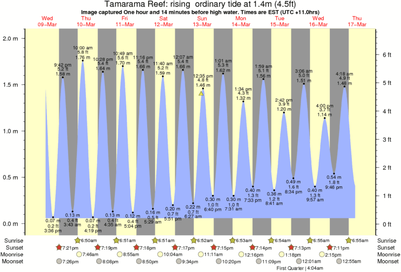 Forecast wind and swell just offshore from Tamarama Reef around the time the photo was taken