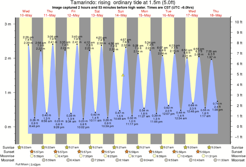 Forecast wind and swell just offshore from Tamarindo around the time the photo was taken