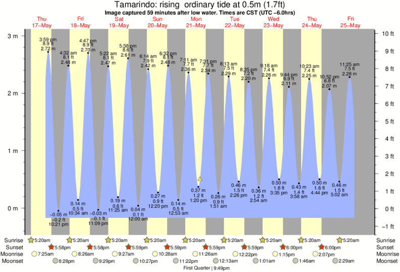 Forecast wind and swell just offshore from Tamarindo around the time the photo was taken