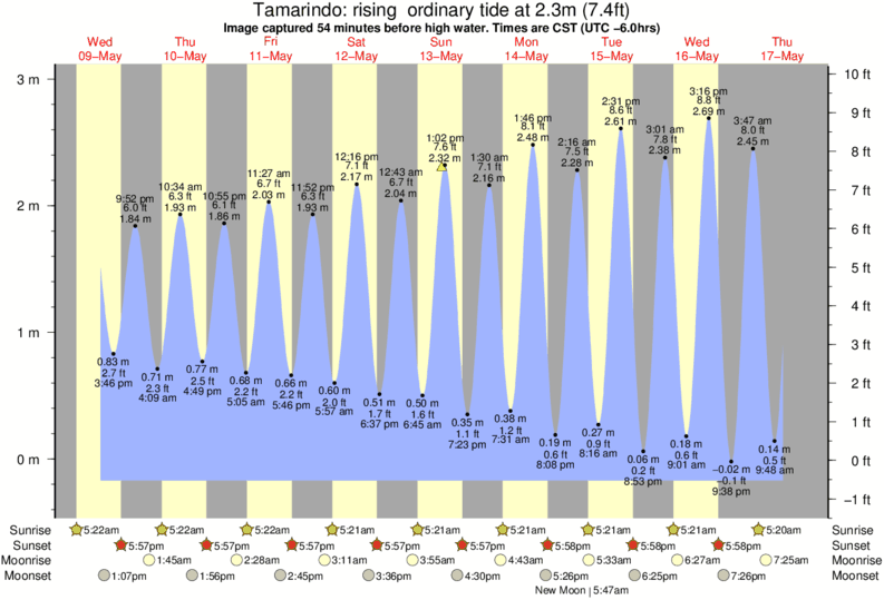 Forecast wind and swell just offshore from Tamarindo around the time the photo was taken