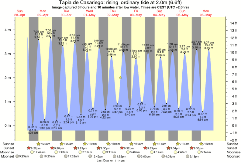 Image captured 3 hours and 10 minutes after low water (rising ordinary tide). Tide height was 2.0m (6.6 ft). Range 4.31m (14.1 ft). Toggle tide graph