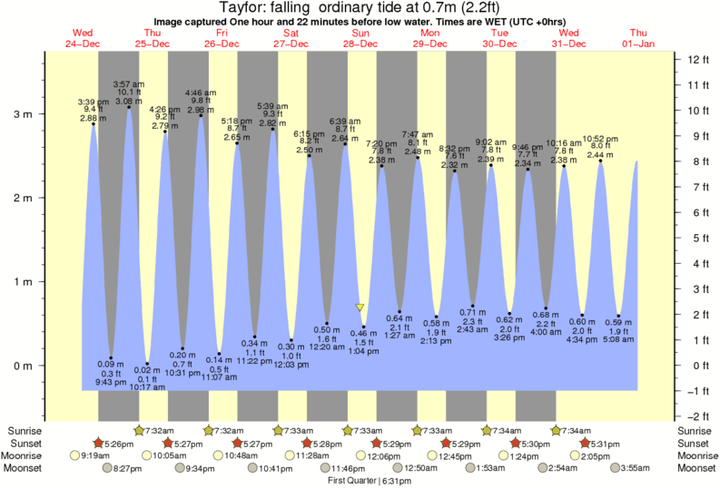 Image captured One hour and 22 minutes before low water (falling ordinary tide). Tide height was 0.7m (2.2 ft). Range 3.68m (12.1 ft). Toggle tide graph