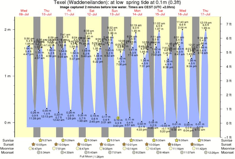 Image captured 2 minutes before low water (at low spring tide). Tide height was 0.1m (0.3 ft). Range 2.16m (7.1 ft). Toggle tide graph